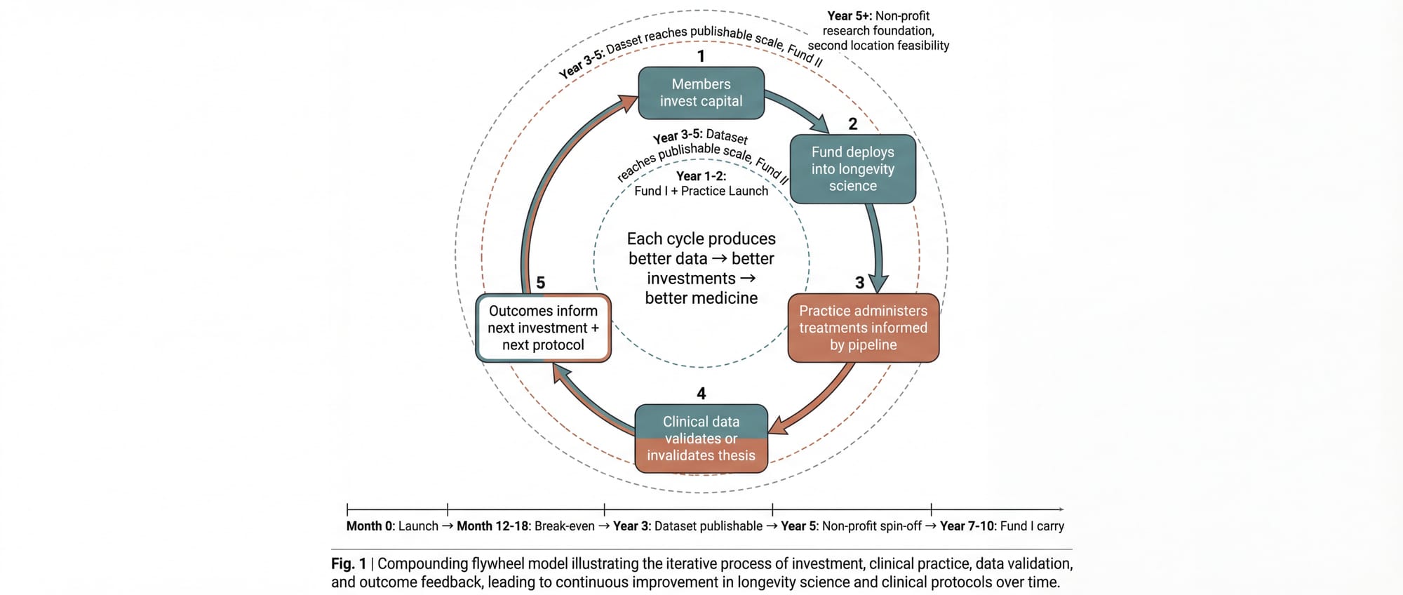 - Outcomes inform both the next investment decisions and the next treatment protocols. The fund gets smarter. The practice gets better. The members receive both financial returns and personal health benefits that improve with each iteration.